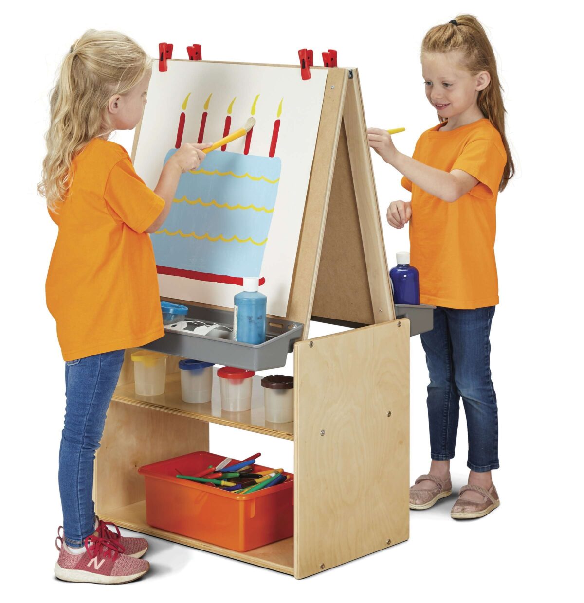 Inspire your young artists with this Ready-to-Assemble double-sided art center. Ample storage space below helps keep art supplies handy. Add optional 7096YT “Caster Kit – A” to make this unit mobile (sold separately).